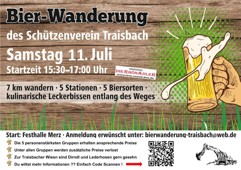 Nach den erfolgreichen Bierwanderungen der letzten Jahre gibt es dieses Jahr selbstverständlich erneut eine Bierwanderung rund um Traisbach.
